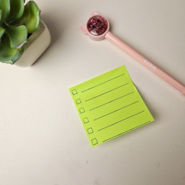 Porta post it con 4 stencils para que puedas convertir tus notas en listas o pequeños planificadores. La base se fabrica en blanco podes seleccionar el color de los stencils.